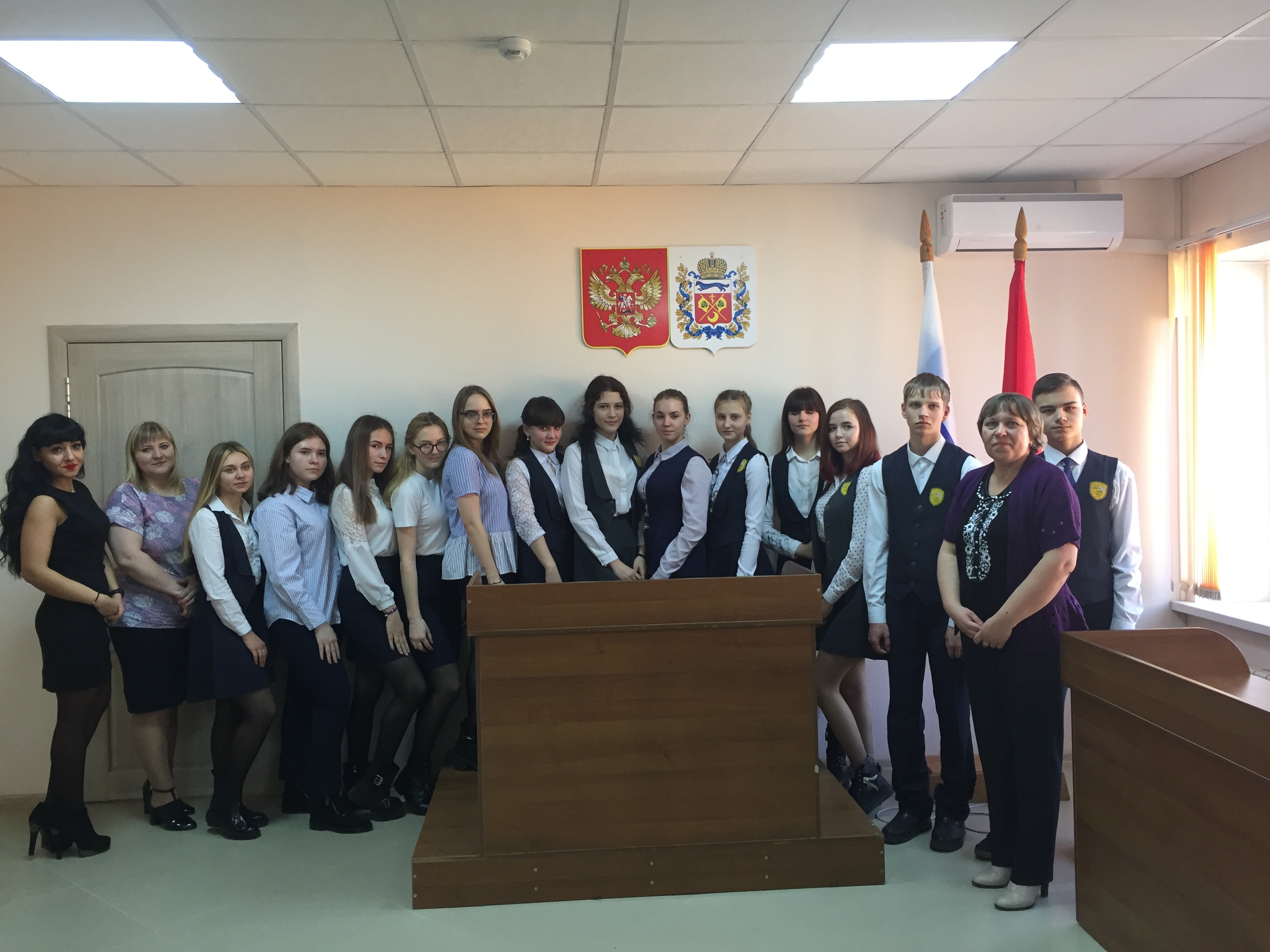 После лекции проведена ознакомительная экскурсия по зданию суда и его территории, был продемонстрирован зал судебного заседания, кабинет аппарата судьи, а также сам кабинет судьи. Судья судебного участка №9 В.В. Козлов рассказал, чем занимаются люди в судейских мантиях, как проходят судебные процессы, какие требования предъявляются к кандидатам на должность судей, разъяснил порядок назначения судей, а также ответил на вопросы, интересующие учащихся.